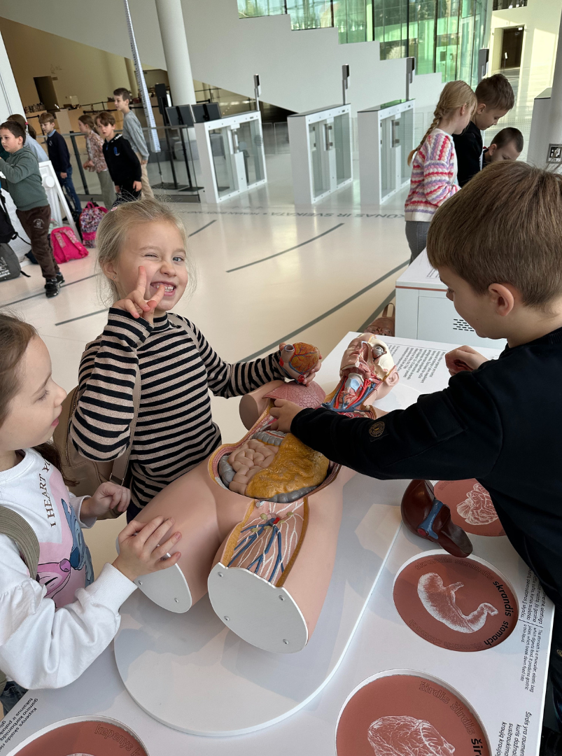Lapkričio 13 dieną mūsų antrokai vyko į edukacinę išvyką, į „Mokslo salą“ Kaune. Tai modernus mokslo muziejus, kuriame vaikai galėjo ne tik stebėti, bet ir patys išbandyti įvairius eksponatus bei eksperimentus. Didžiausią įspūdį paliko interaktyvūs prietaisai, leidžiantys pažinti gamtos reiškinius, žmogaus kūno veiklą ir technologijas. Taip pat apsilankėme įspūdingame planetariume – virtuali kelionė po žvaigždėtą dangų paliko neišdildomų įspūdžių! Grįžome kupini gerų emocijų, naujų žinių ir dar didesnio smalsumo pažinti pasaulį. Tai buvo ne tik įdomi, bet ir naudinga patirtis!