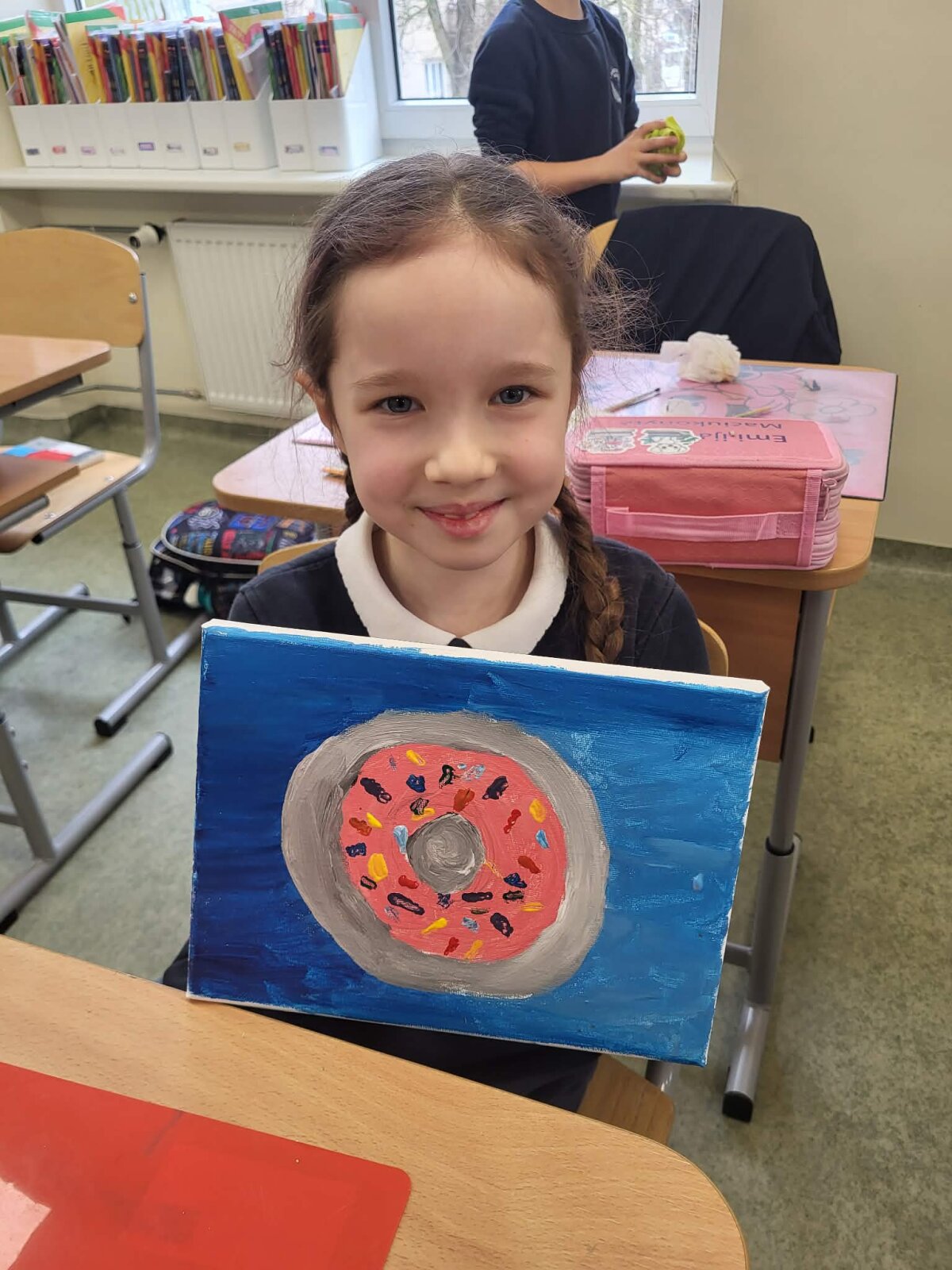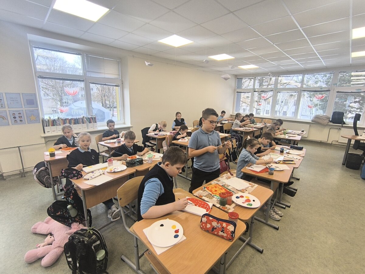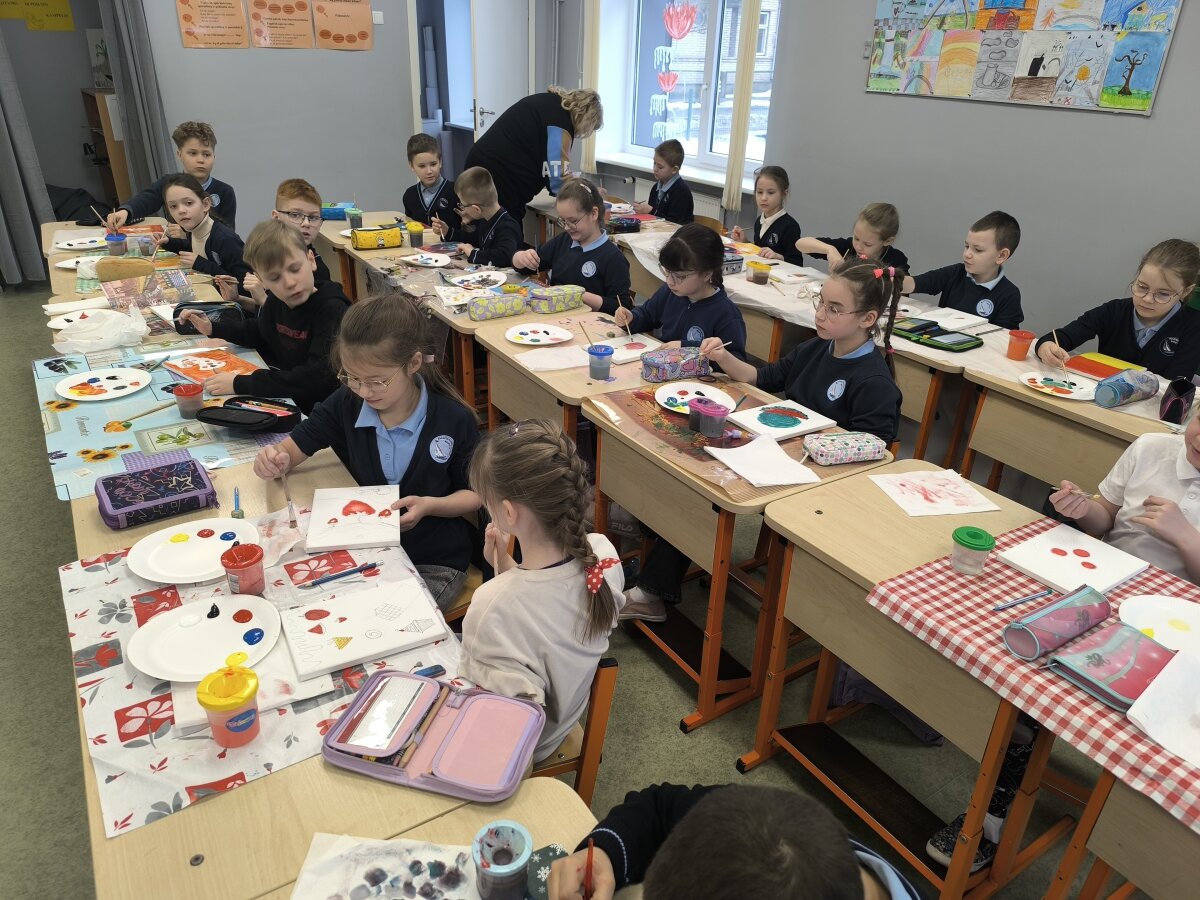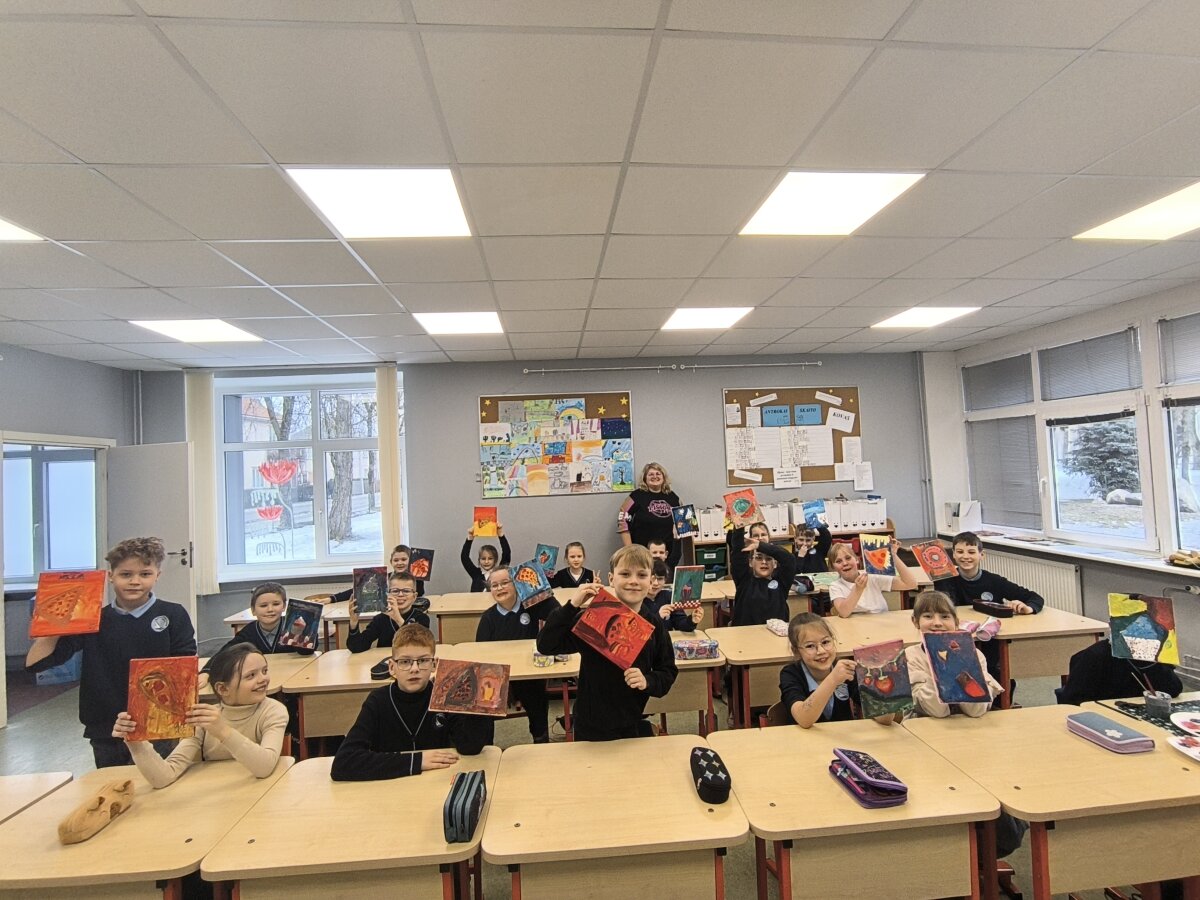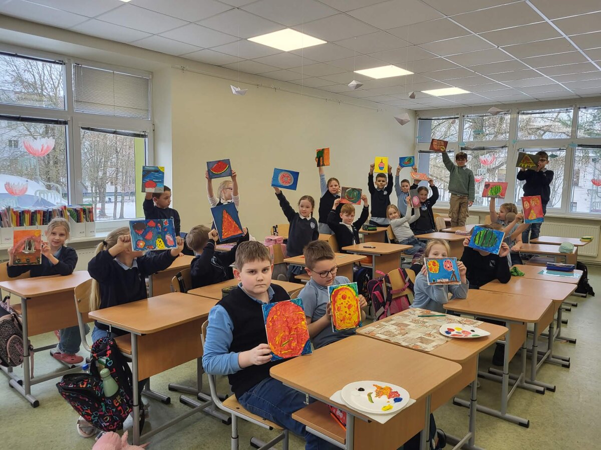 2a ir 2b klasėse svečiavosi dailininkė Laima Spietinytė, kuri mokiniams pravedė įdomią tapybos ant drobės edukaciją. Užsiėmimo metu mokiniai susipažino su tapybos pagrindais ir turėjo galimybę patys kurti paveikslus ant drobės. Dailininkė papasakojo apie kūrybos procesą, parodė, kaip maišomos spalvos ir kaip iš pagrindinių spalvų galima išgauti įvairius atspalvius. Mokiniai sužinojo, kaip derinti spalvas ir kokiomis technikomis galima tapyti.