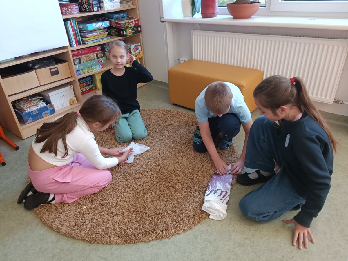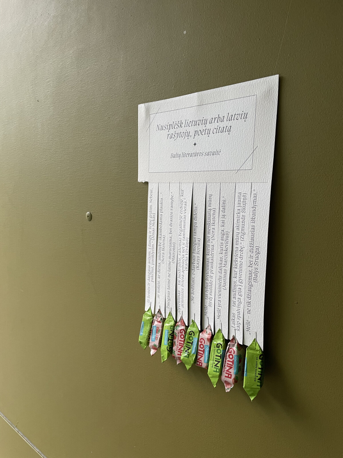 Projekto savaitę pradėjome su gražiomis latvių ir lietuvių autorių, poetų citatomis, visus vaišinome karvučių (gotina) saldainiais. Visi vaikai savo klasėse buvo supažindinti, kas yra baltų savaitė ir kodėl mes ją švenčiame. Savaitės eigoje bibliotekininkė su mokyklos mokytojomis organizavo integruotas pamokas apie baltų literatūros savaitę, žiūrėjome animacinį filmą „Piktmaišis“, kalbėjome apie rūšiavimą, latviškus žodžius, taip pat patys pasigaminome plastikinį chuliganą, kuris dabar galės keliauti kartu su vaikais į parduotuvę ir jausis reikalingas.