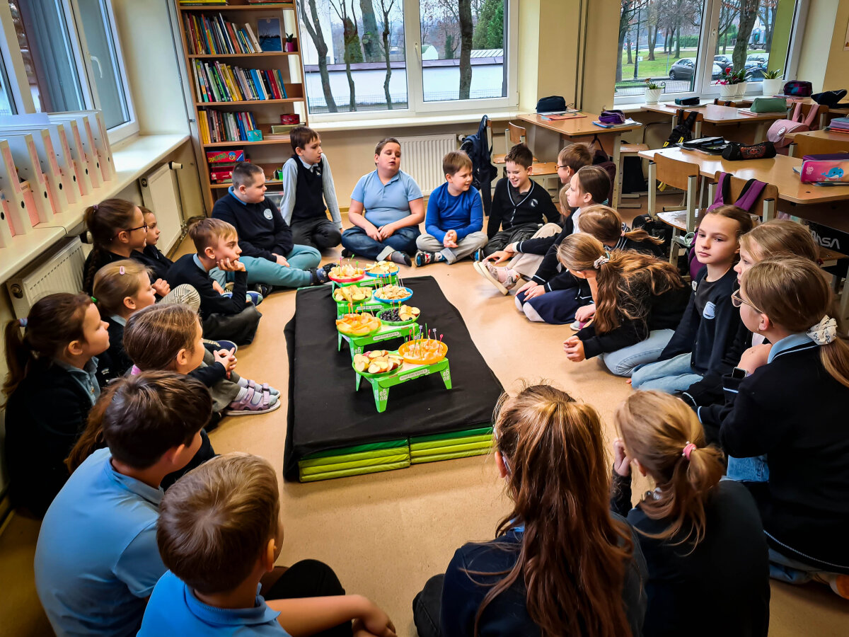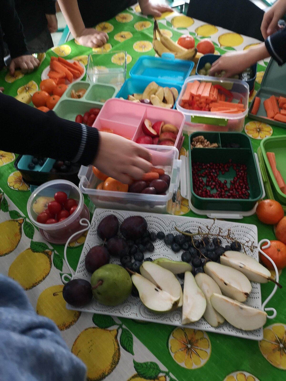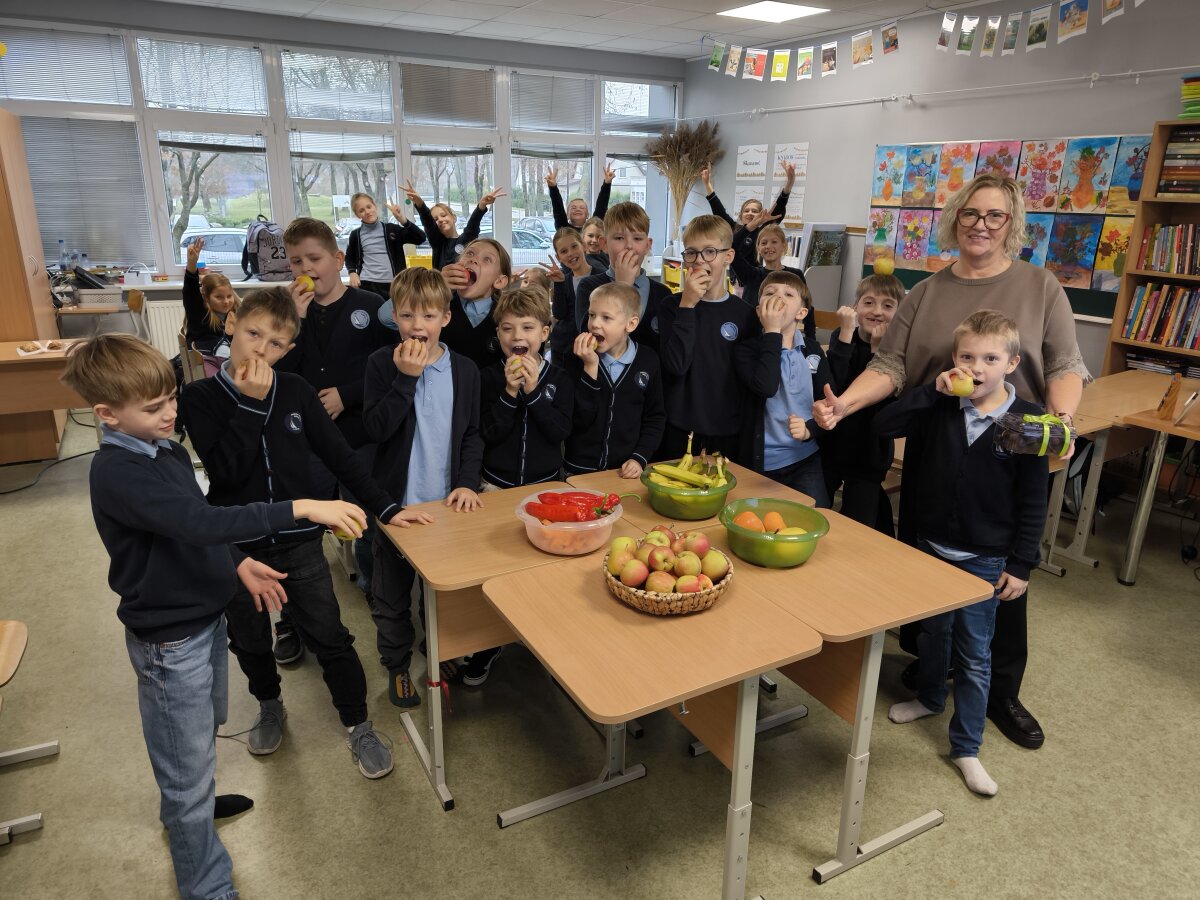 Lapkričio 21 dieną minėjome Europos sveikos mitybos dieną. Pertraukų metu mokiniai valgykloje mėgavosi vandeniu, pagardintu įvairiais vaisiais, uogomis, agurkais ir kvapniomis mėtomis. Už ypatingai skanią moliūgų sriubą dėkojame valgyklos virėjoms. Klasėse surengėme traškių daržovių ir saldžių vaisių iškylas. Sveikatos specialistė lankėsi visose klasėse, su mokiniais diskutavo ir tikrino jų žinias apie vaisius ir daržoves bei jų naudą organizmui. Jonavos visuomenės sveikatos biuras vaišino sultingomis vynuogėmis. Už vaisius, daržoves ir jų kūrybišką pateikimą dėkojame mokiniams, jų tėveliams ir, žinoma, klasių vadovėms. Diena buvo kupina sveikatos, nuotykių, skonių ir šypsenų – tokios akimirkos įkvepia rinktis sveikesnius pasirinkimus kasdien!