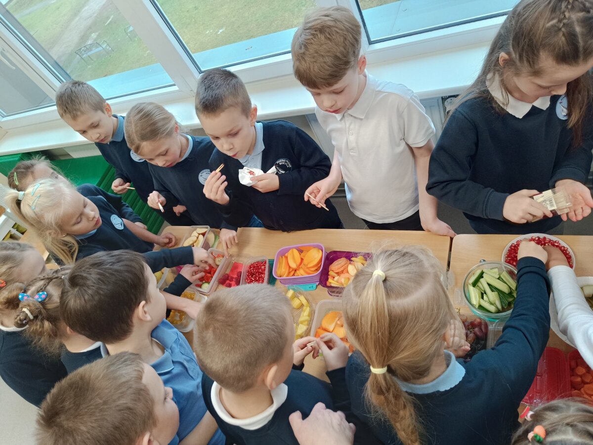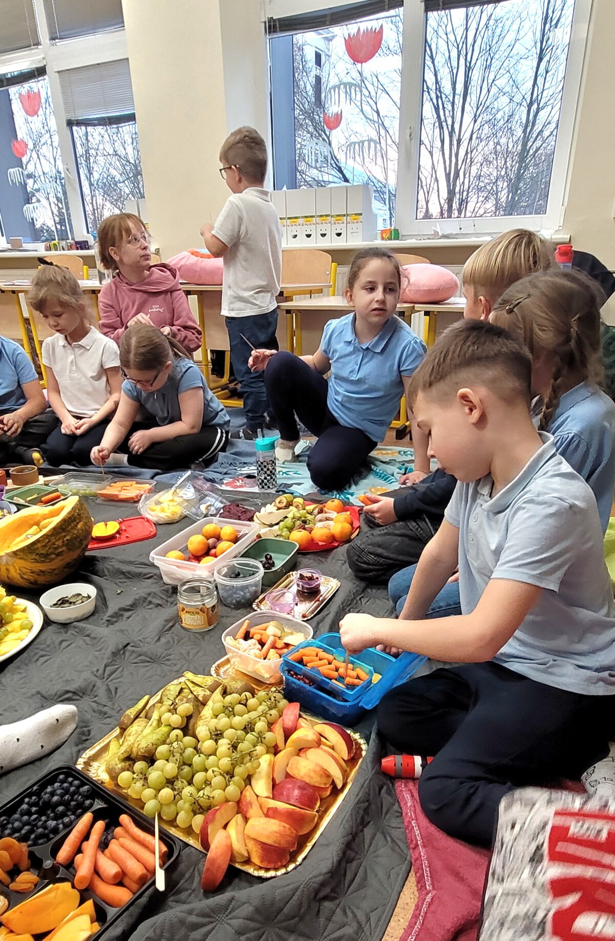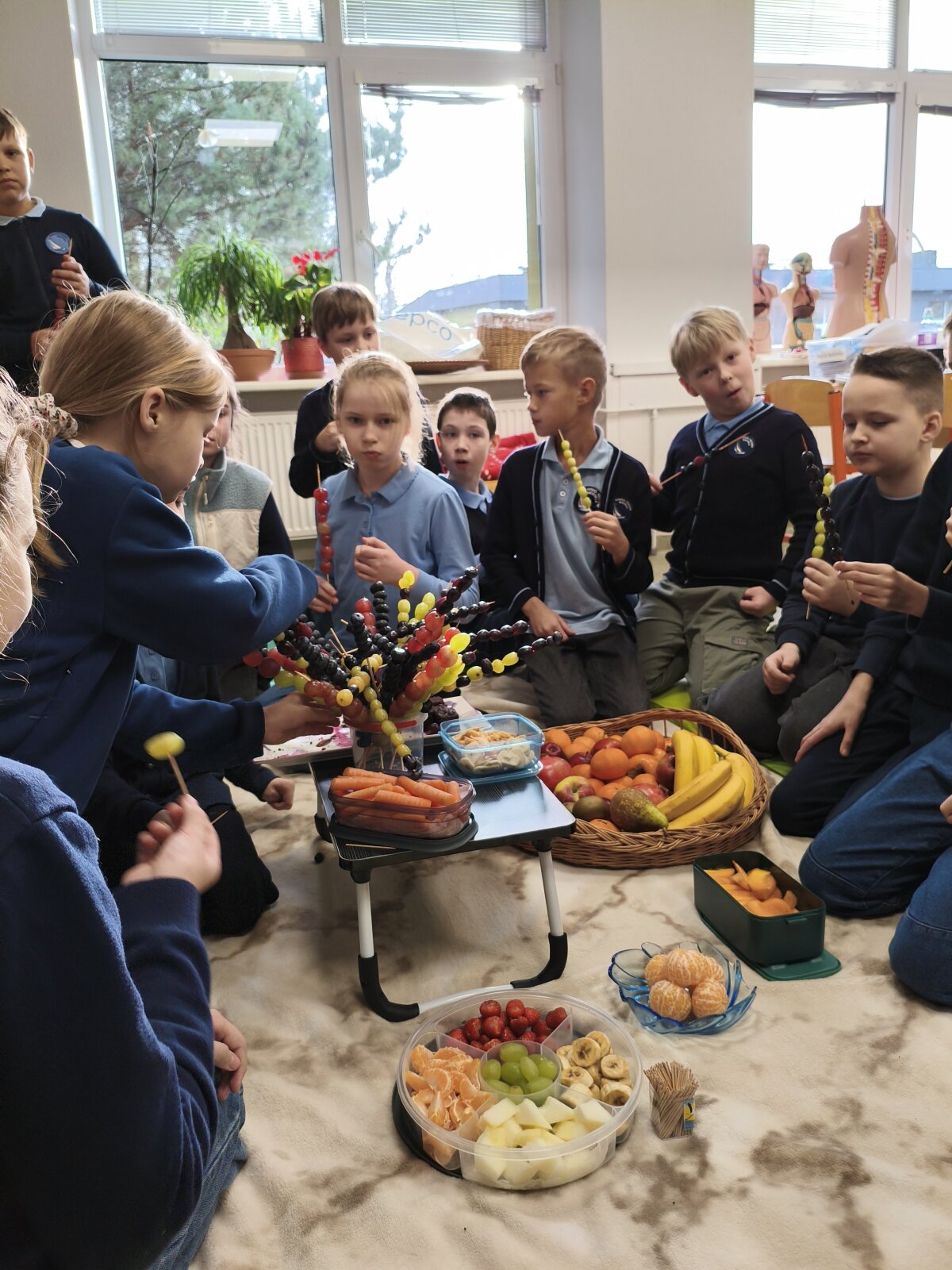 Lapkričio 21 dieną minėjome Europos sveikos mitybos dieną. Pertraukų metu mokiniai valgykloje mėgavosi vandeniu, pagardintu įvairiais vaisiais, uogomis, agurkais ir kvapniomis mėtomis. Už ypatingai skanią moliūgų sriubą dėkojame valgyklos virėjoms. Klasėse surengėme traškių daržovių ir saldžių vaisių iškylas. Sveikatos specialistė lankėsi visose klasėse, su mokiniais diskutavo ir tikrino jų žinias apie vaisius ir daržoves bei jų naudą organizmui. Jonavos visuomenės sveikatos biuras vaišino sultingomis vynuogėmis. Už vaisius, daržoves ir jų kūrybišką pateikimą dėkojame mokiniams, jų tėveliams ir, žinoma, klasių vadovėms. Diena buvo kupina sveikatos, nuotykių, skonių ir šypsenų – tokios akimirkos įkvepia rinktis sveikesnius pasirinkimus kasdien!
