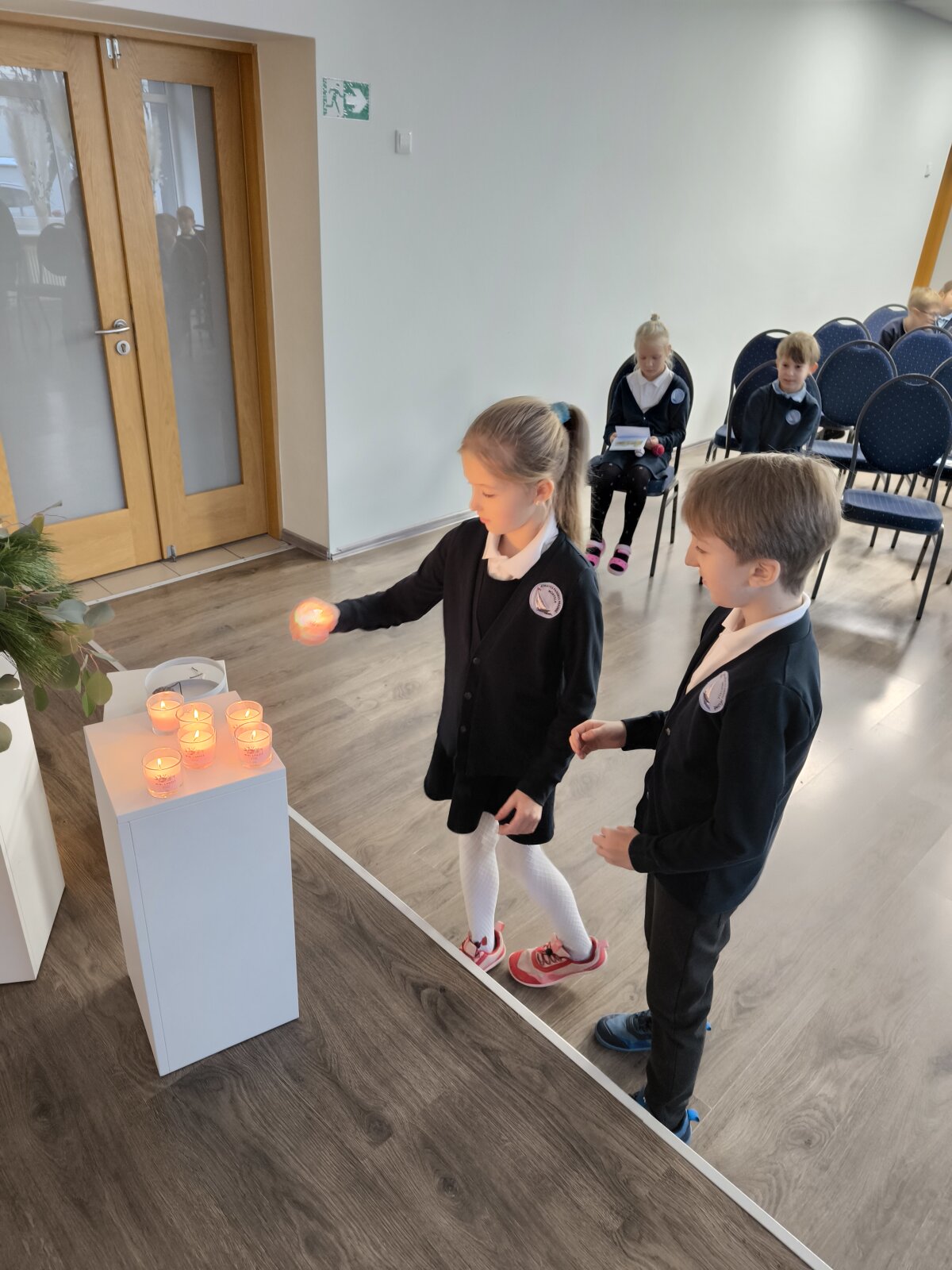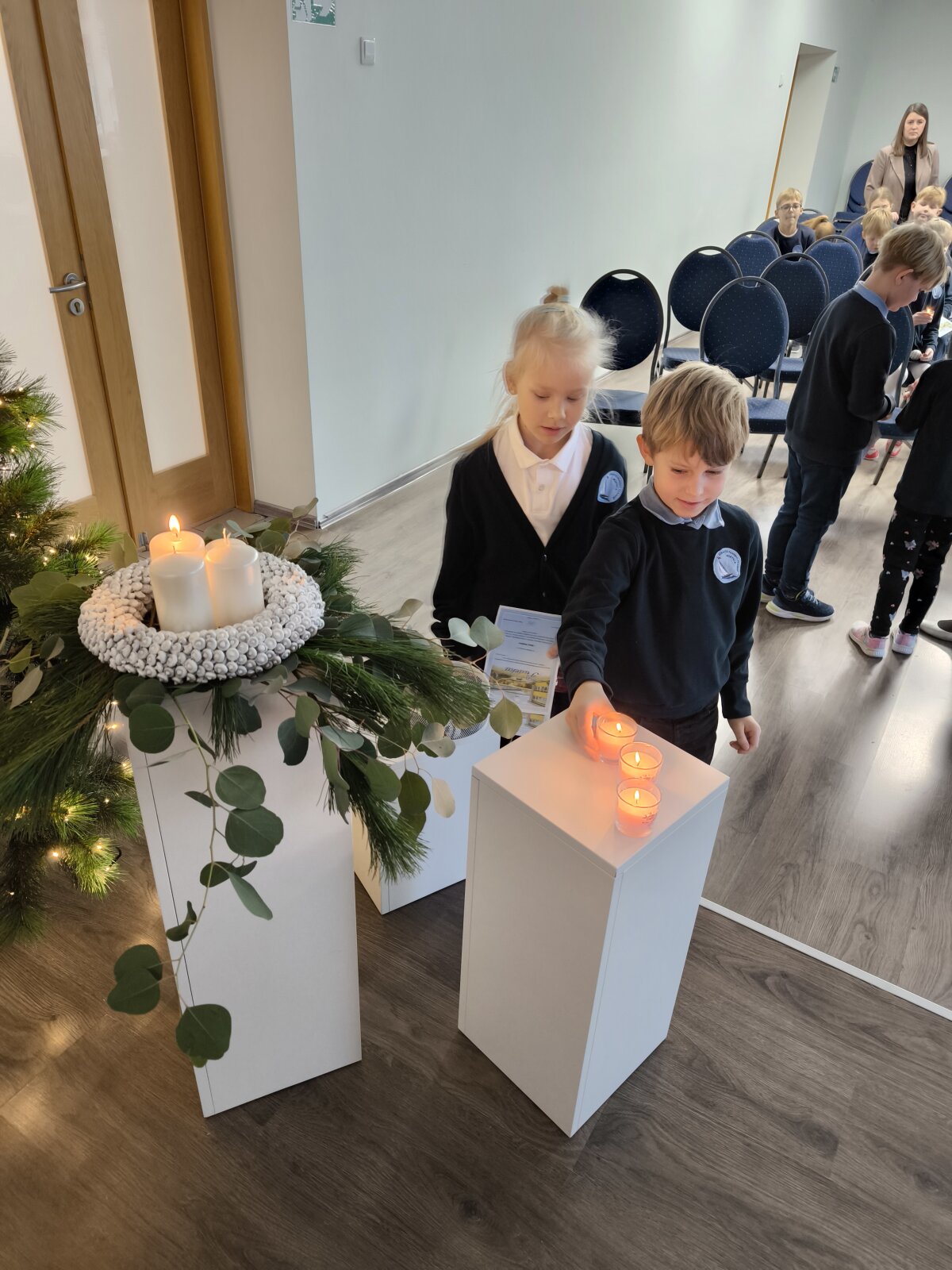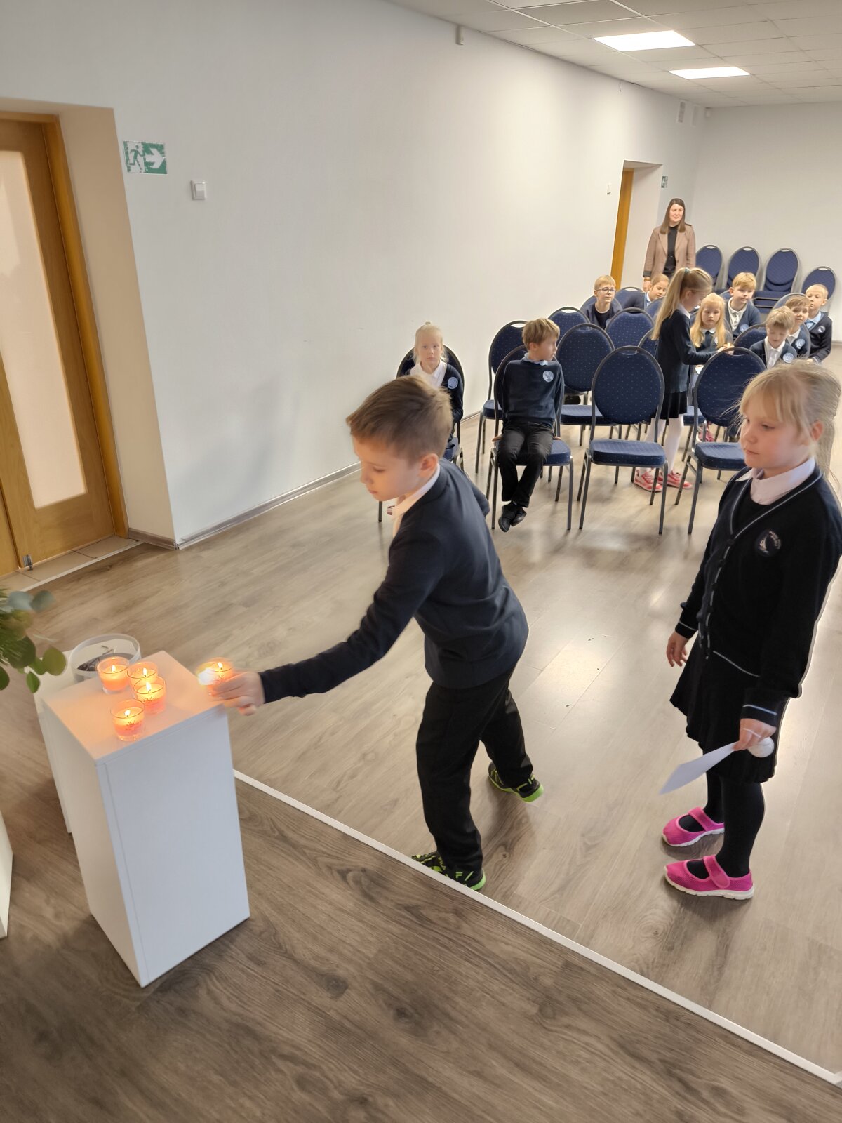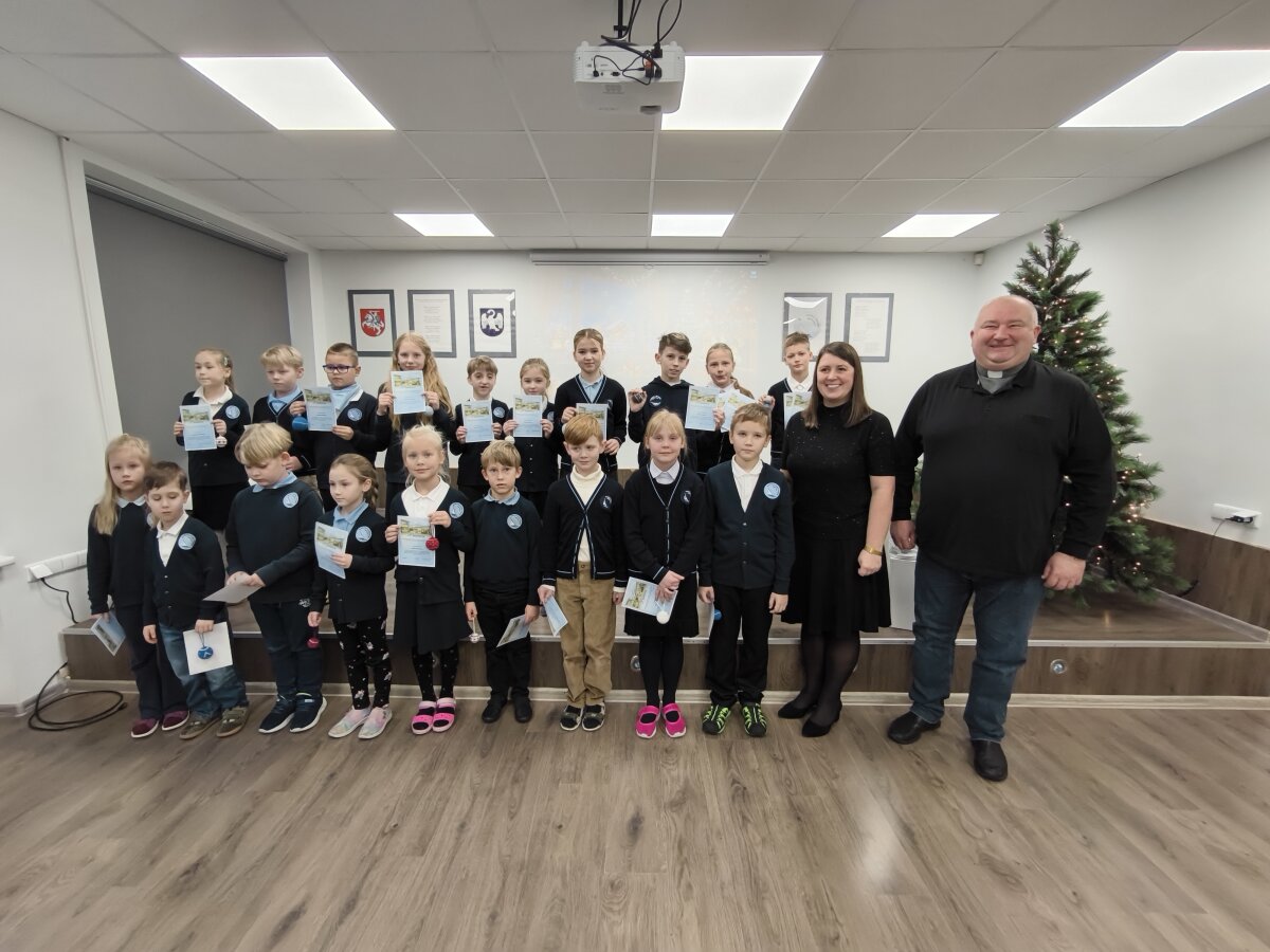 Gruodžio 1-osios rytmetį mokykloje minėjome Advento pradžią. Klebonas Virginijus Birjotas uždegė pirmąją Advento žvakę, simbolizuojančią viltį, ramybę ir šviesą, pasidalijo mintimis apie Advento prasmę ir pakvietė mokyklos bendruomenę atsigręžti į gerumą kasdienybėje. Renginio metu pasveikinome tolerantiškiausius mokinius – tuos, kurie kasdien savo elgesiu kuria draugišką ir šviesią grupės, klasės, mokyklos atmosferą. Ketvirtokas Joris pasakojimu „Pietūs su Dievu“ priminė apie paprastą, bet labai svarbų žmogiškąjį gerumą. Vėliau klebonas kartu su klasių atstovais uždegė žvakeles nuo adventinio vainiko, kad ši, į klases parsinešta šviesa, lydėtų viso laukimo metu, sujungtų mus gerumo tiltais: nuo širdies iki širdies.