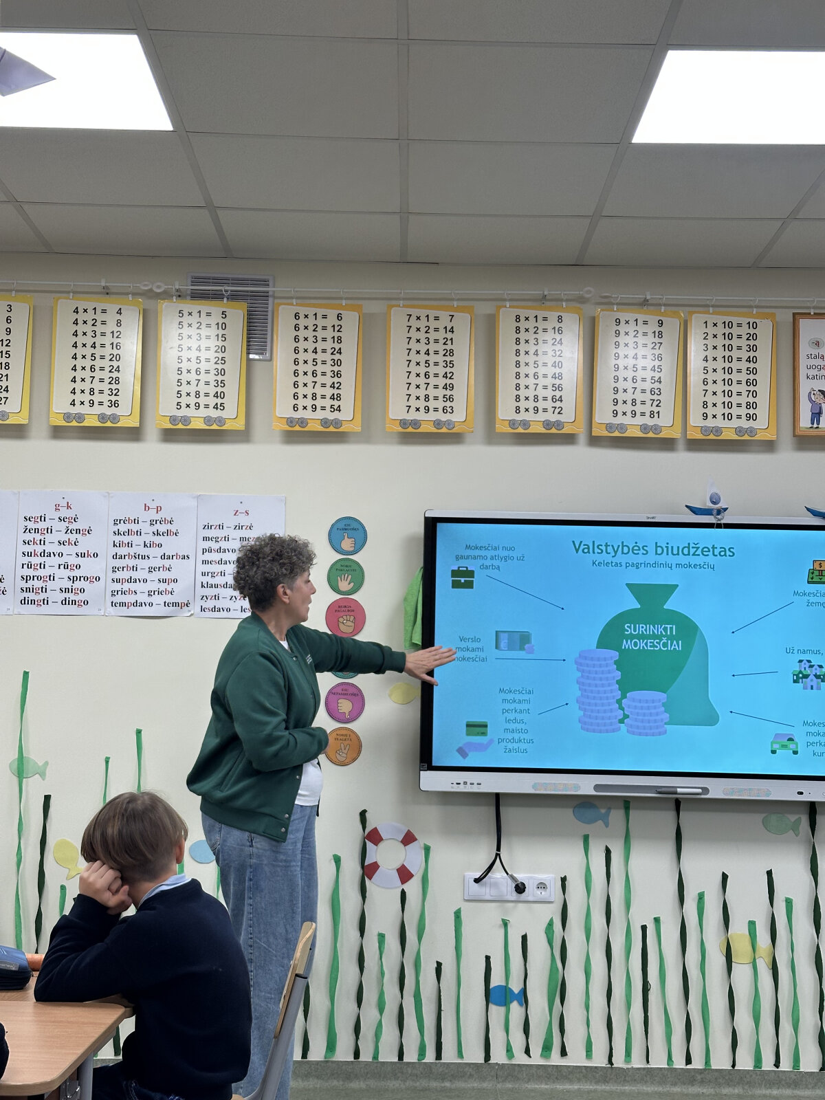 Šiandien į 2a ir 2b klasių pamokas atvyko Valstybinės mokesčių inspekcijos (VMI) atstovė, mokinio močiutė - Vygantė. Ji vaikams papasakojo, kas yra mokesčiai ir kodėl jie svarbūs kiekvienam šalies gyventojui.