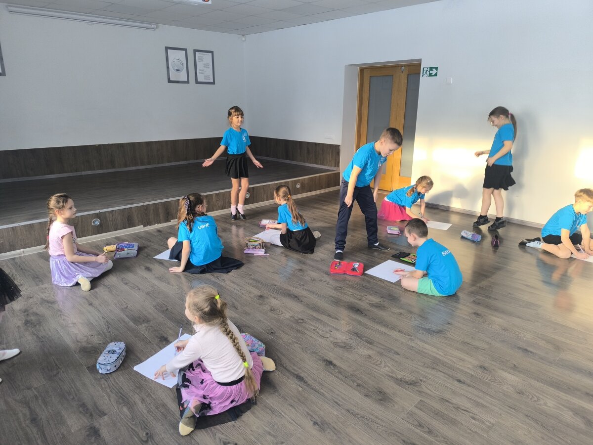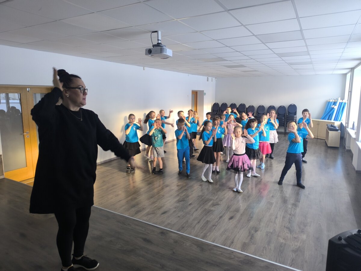 2b klasės pamokoje „Nuo judesio iki linijos“ šokis ir dailė susijungė į vieną kūrybinę patirtį. Mokiniai stebėjo šokančius klasės draugus ir popieriuje fiksavo judesių ritmą, sukinį bei formas – linijomis perteikė tai, kas nuolat kinta. Pagal muziką „piešė“ ore su pieštuku, leisdami judesiui vesti liniją ir atskleisti nuotaiką. Pamoką papildė smagus krypčių žaidimas, kvietęs judėti drąsiai, greitai reaguoti ir išbandyti savo jėgas. Ši integruota veikla skatino kūrybiškumą, vaizduotę ir padėjo mokiniams atrasti, kaip judesys gali tapti menu.