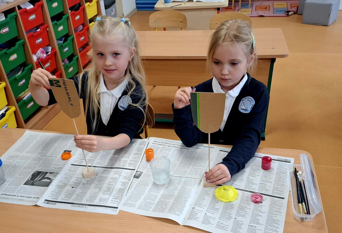 Integruotoje 2a ir 2b klasių matematikos ir dailės pamokoje mokiniai, įkvėpti Ne... -