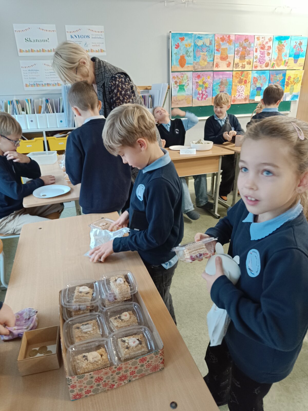 Šiandien mokykloje tvyrojo ypatinga nuotaika ir gardžių kepinių kvapas. Kiekvienas pyrago gabalėlis tapo bendrai kuriamo stebuklo dalimi. Džiaugiamės, kad Pyragų dienos iniciatyvoje kartu surinkome 565 eurus, kuriuos šiemet skirsime Vaikų raidos klinikai ir bent truputį padėsime trims ypatingiems vaikams, kurių gyvenimai kupini sudėtingų iššūkių, tačiau kartu juose daug drąsos, atkaklumo ir vilties.