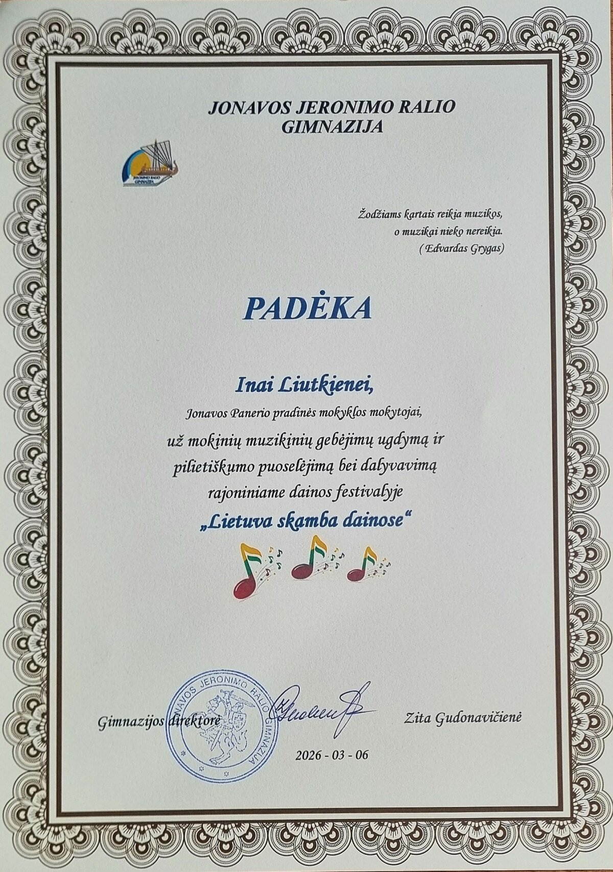 2026 m. kovo 6 d. Jonavos Jeronimo Ralio gimnazijos aktų salėje vyko dainos festivalis „Lietuva skamba dainose“, skirtas Lietuvos valstybės nepriklausomybės atkūrimo dienai paminėti. Renginyje dalyvavo Jonavos miesto ir rajono mokyklų mokiniai – solistai, duetai ir ansambliai.