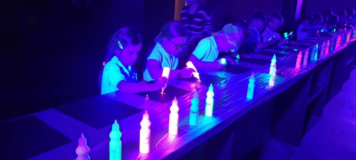 Spalio 15 d. VDM (1b) klasės paneriukai lankėsi Jonavos kultūros centre. Čia juos šiltai pasitiko 1b klasės mokinės mama - dailininkė dizainerė Dovilė Grybienė. Buvo labai smalsu apžiūrėti skirtingas, įvairioms veikloms pritaikytas erdves. Vaikai susipažino su meno bei kultūros profesijų įvairove, didžiojoje scenoje išbandė mikrofonus, suprato, kiek daug žmonių, technikos, priemonių, aparatūros reikia, norint paruošti pasirodymą. Na, o smagiausia šios išvykos dalis pirmokams buvo – piešimas tamsoje švytinčiais dažais! Dėkojame Jonavos kultūros centro darbuotojams už neišdildomus įspūdžius ir patirtis!